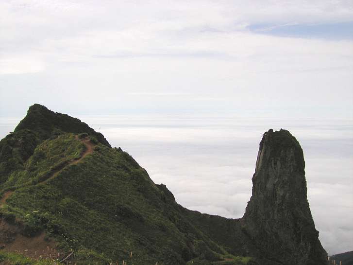 | 山頂より南峰とローソク岩 | 山頂での一枚 |