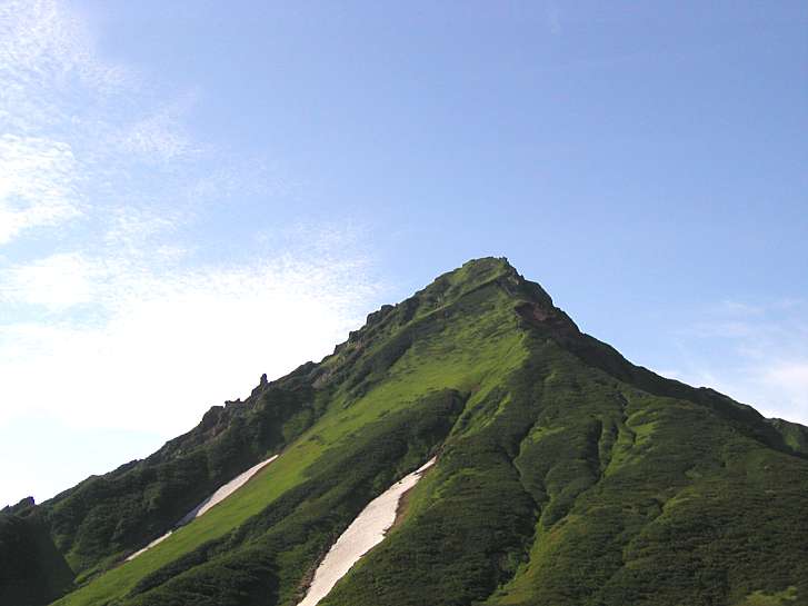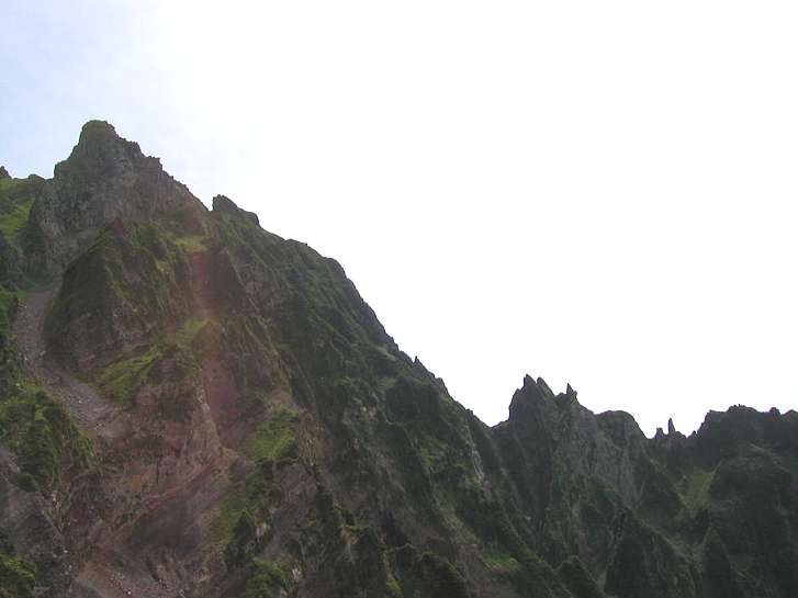 長官山から利尻の眺めは素晴らしかった。 写真ではそんなに見えないが、そそり立つ 感じが登っている喜びを増幅した。 |