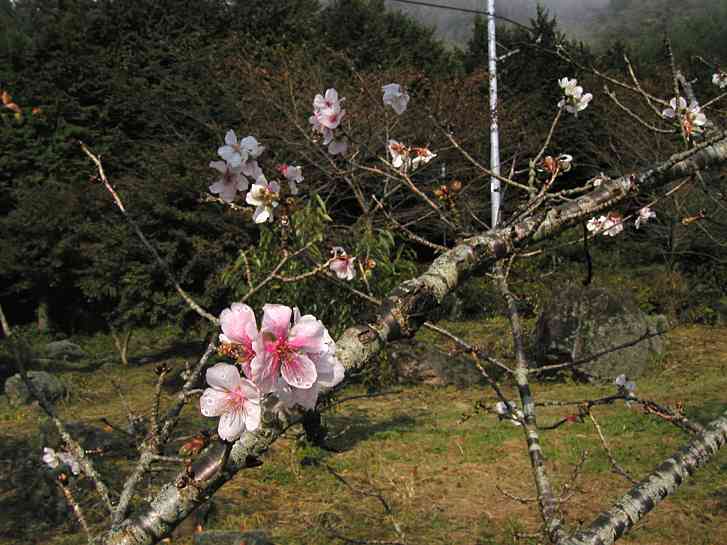 ロープウェイ駐車場の桜、狂い咲き?