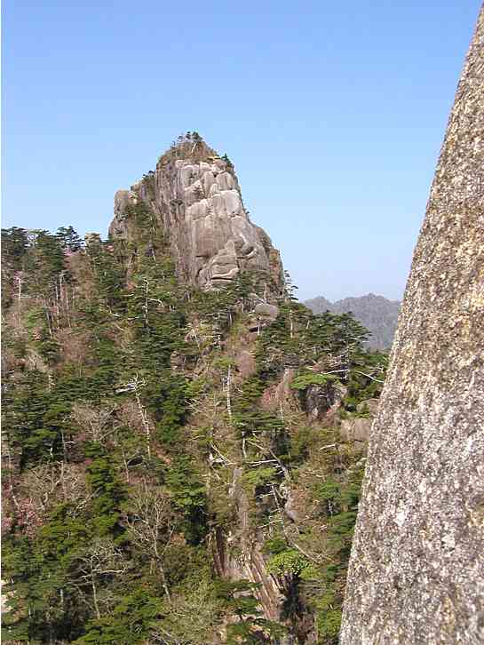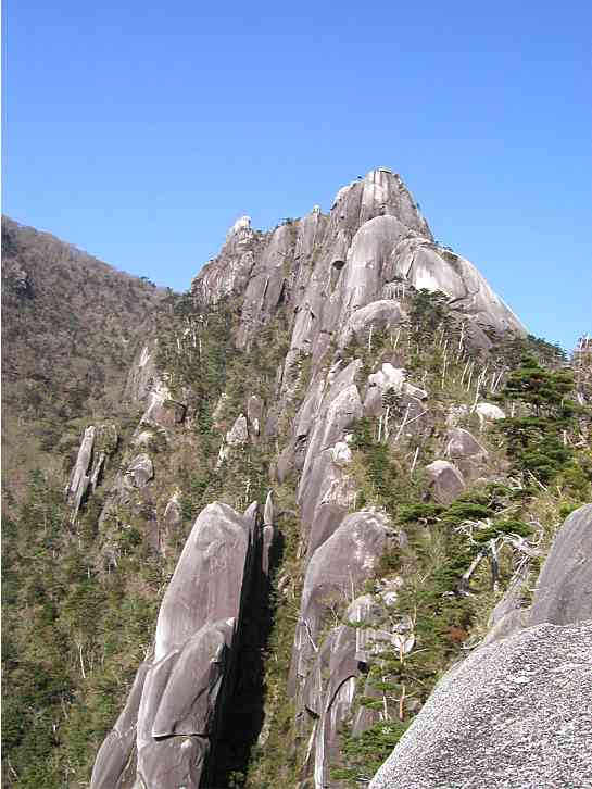 袖ダキから下ワクの岩峰です。 ここでの景色が二度目に感動する とこです。 ここで四国からの若いお二人に お会いしました。 この辺から団体が多くなり、 逃げるように先に歩き始めました。 |