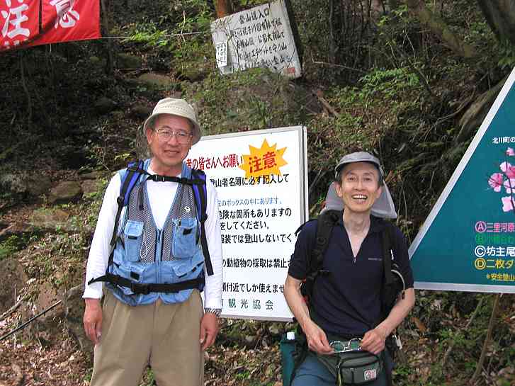 登山口についたとこで、 のんちゃんと一緒に一枚。 一緒の写真はこれがはじめて でした。(^^ゞ |
