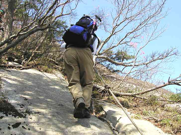 坊主尾根のはしご、またはしご、ロープ 、またロープの連続です。 |