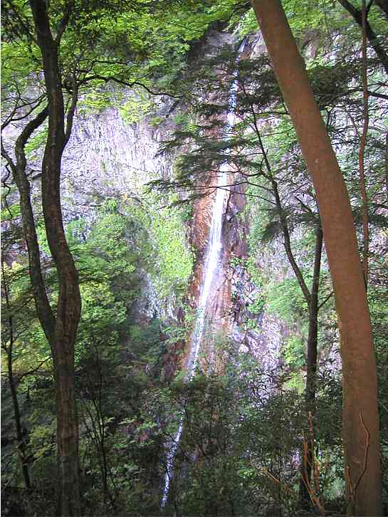 何度か傾に登ったが、この滝を見るのは 初めてだった。 素晴らしい落差の滝だ。この後、この滝の 落ちるところの直ぐ上を通って、林道にあがり 三ツ尾への登山口に着く。 |