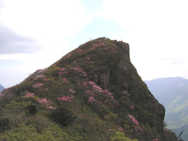 天狗岩、アケボノツツジが 咲き乱れ、写真家さんが カメラのシャッターを押して いました。 |