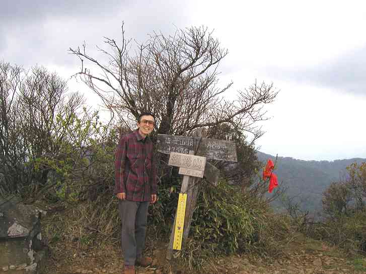 やっと山頂到着。 疲れすぎて気分が悪く、ヤバイと 思って10分ほど静かにしていた。 少し寒くなったので上着を着ての スナップとなった。 山頂は人でいっぱいだった。 |