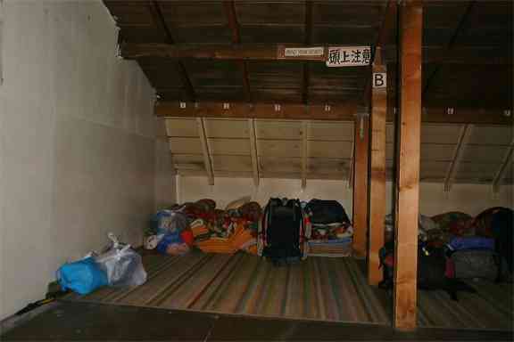 山小屋の宿泊は,どこも一つの布団に枕が二つ並べ、2人で寝る広さしかない。