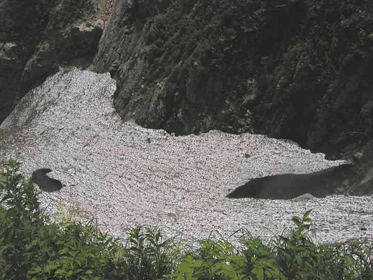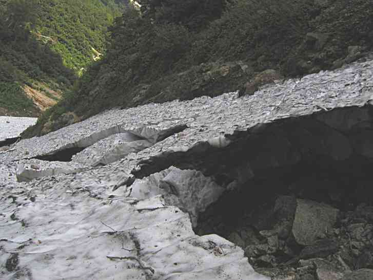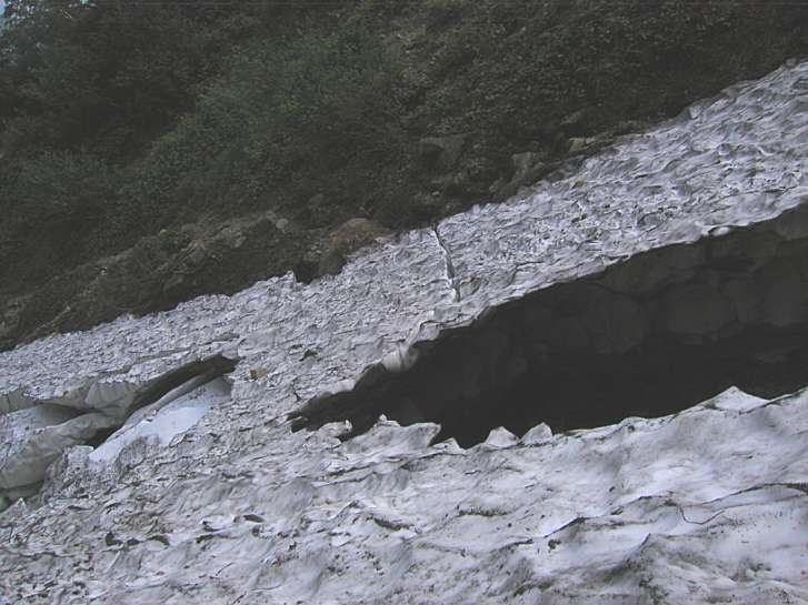 | 雪渓の真中にも穴が | 途中にあった仙人温泉 |